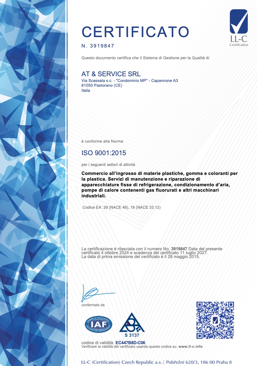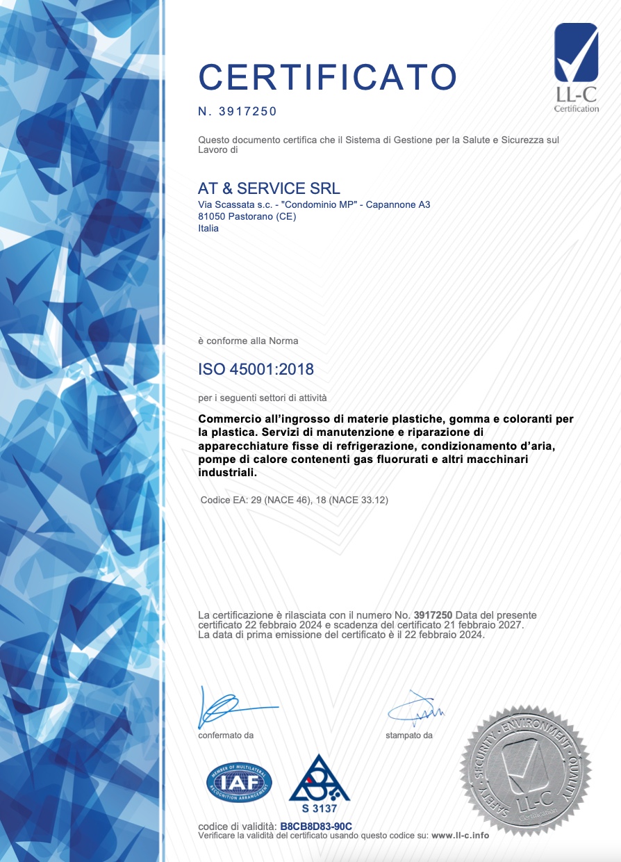 La AT&Service oltre a rispettare principi di responsabilità sociale che rappresentano parte integrante dei valori e delle strategie della società, si avvale di varie e valide certificazioni.